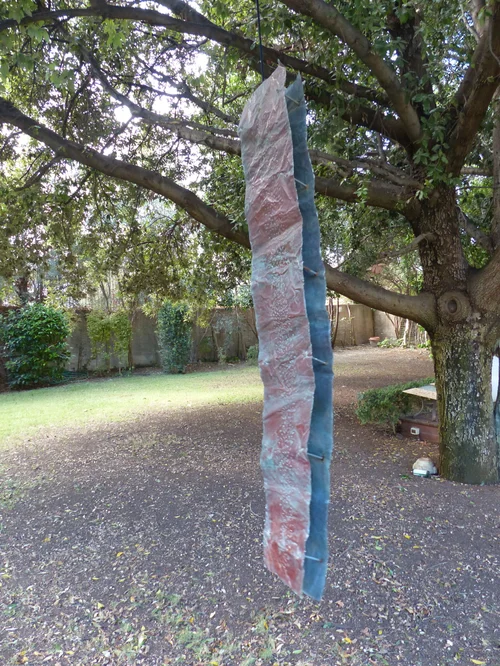 Foulard di seta e cotone, disegni creati in occasione dell’esposizione collettiva a sostegno della donna e dell’ambiente al 70esimo Festival di Sanremo. Opere destinate ad asta di beneficienza per organizzazioni impegnate nello sviluppo e promozione della salvaguardia ambientale e della lotta contro la violenza sulle donne.